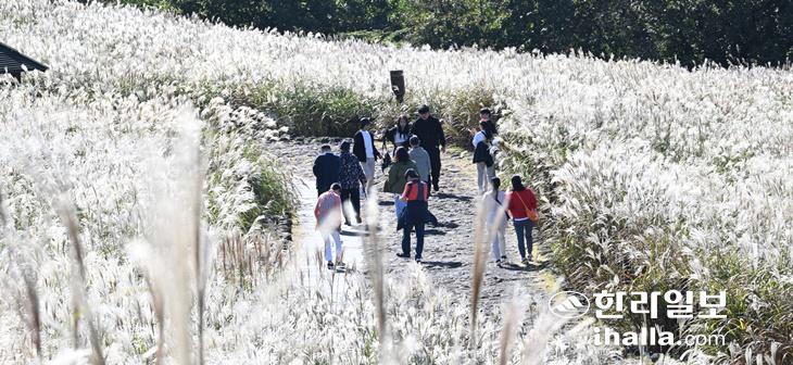 18일 억새로 장관을 이루고 있는 제주 산굼부리. 이상국 기자