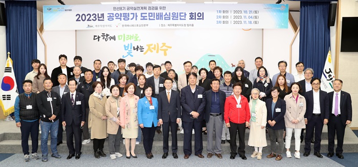 제주특별자치도는 21일 오후 제주도청 본관 4층 탐라홀에서 지역과 연령별로 구성된‘2023년 공약평가 도민배심원단' 위촉식을 가졌다.