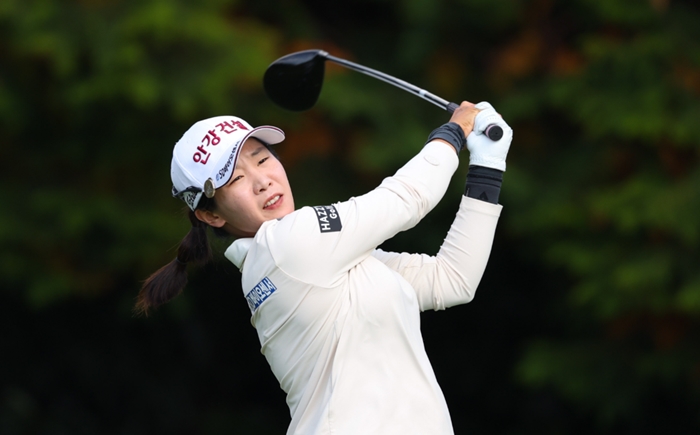 KLPGA SK네트웍스·서울경제 레이디스 마지막날 4번홀에서 티샷하는 임진희. KLPGA 제공