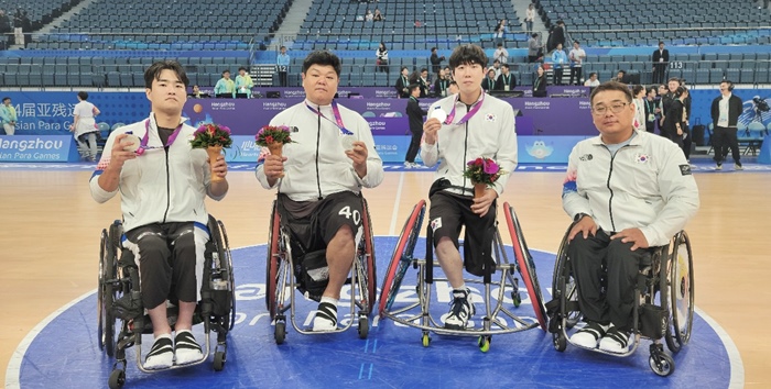 2022항저우 장애인아시아경기대회에서 은메달을 차지한 휄체어 농구팀. 제주자치도장애인체육회 제공