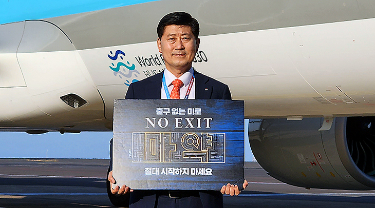 황재홍 대한항공 제주여객서비스지점장(제주공항 항공사운영위원회 AOC 위원장)은 지난달 31일 마약범죄 예방과 근절 릴레이 '출구없는 미로(NO EXIT)' 캠페인에 동참했다