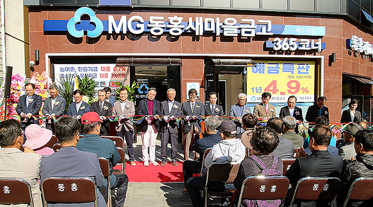 동홍새마을금고(이사장 김장관)는 창립 29주년을 맞아 2일 서귀포시 중정로 대로변 5층(지하 1층, 지상 4층) 빌딩을 인수해 제2지점 개점식을 개최했다. 이날 개점식에서는 제2지점 관할 구역인 중앙동에 노인 틀니 지원금과 이웃 돕기 성금으로 500만 원을 전달했다.