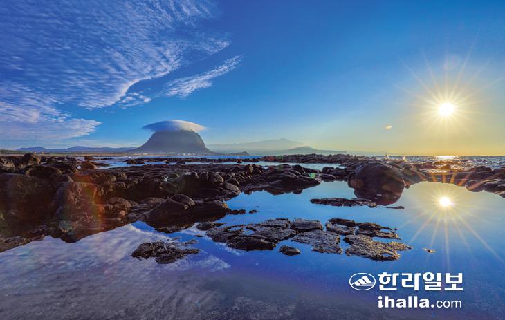 산방산 꼭대기에 걸쳐있는 구름. 산방산유람선 대표 이치우(사진작가) 제공