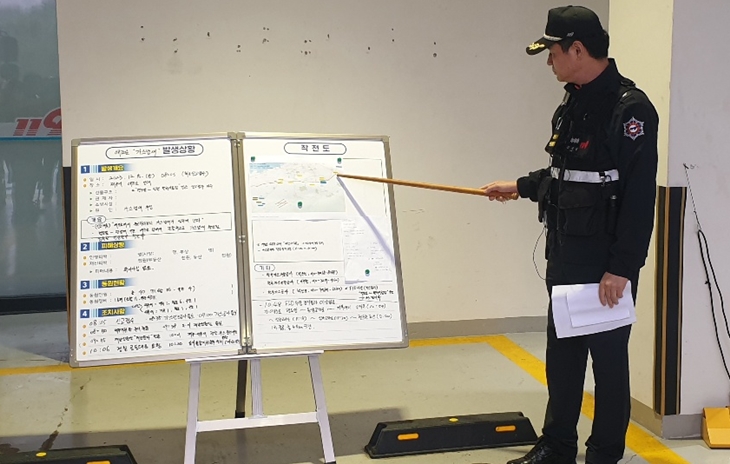 김성진 제주소방서 현장대응단장은 15일 제주 아라119센터에서 가스 냄새 신고 브리핑을 하고 있다.