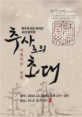 [한라일보] 지난 8월 침수 피해로 인해 임시 휴관중인 제주추사관이 30일 재개관과 함께 송년 음악회를 개최한다.