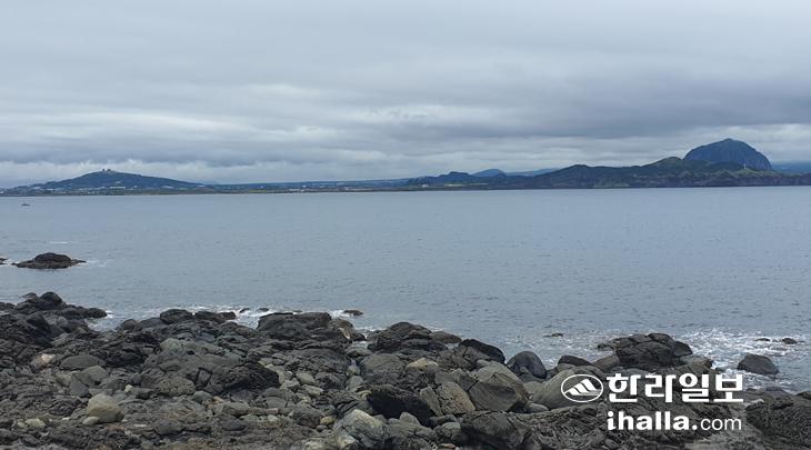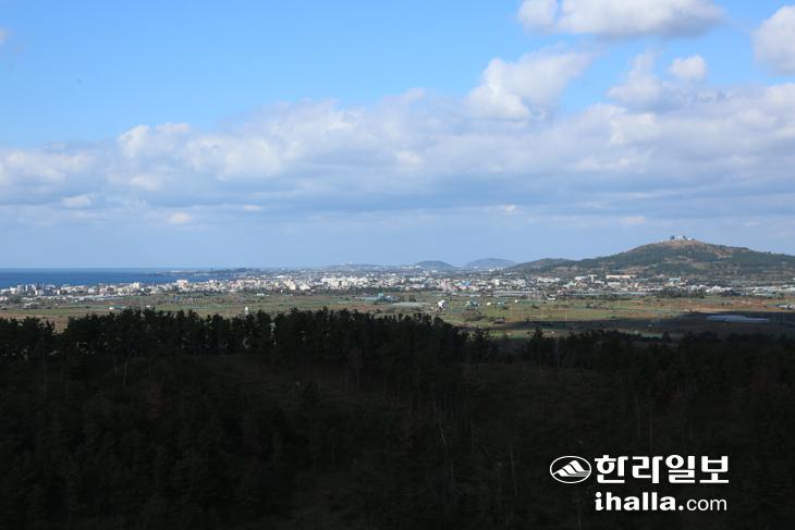 왼쪽 봉우리는 모슬악, 오른쪽 봉우리는 산방산이다. 두 오름은 높이가 대조적이다.