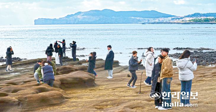 제주 겨울바다 즐기는 관광객. 한라일보DB