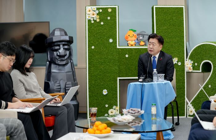 4일 기자간담회 갖는 오영훈 제주지사. 제주자치도 제공