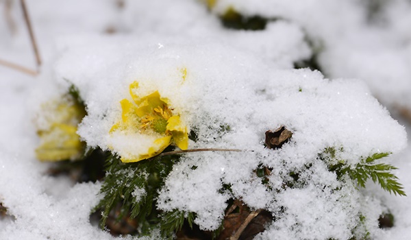 눈 속에 피어난 복수초. 한라일보DB