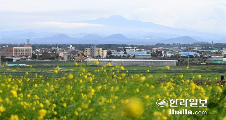 만설 한라산과 유채꽃. 한라일보DB