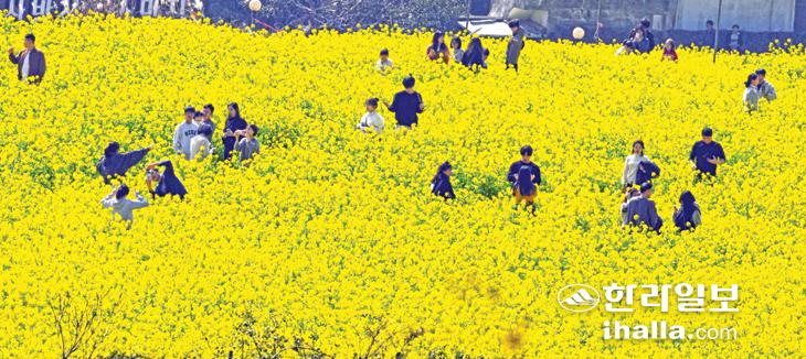 노란 유채꽃 활짝 핀 제주. 한라일보DB