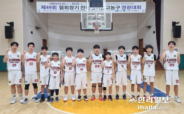 제49회 협회장기 전국남녀중고농구 영광대회에 출전한 제주동중. 왼쪽부터 오광, 이주찬, 윤대협, 강건한, 권태훈, 허태강, 이민소, 강은율, 김준서, 이지후, 정윤서, 김현진.