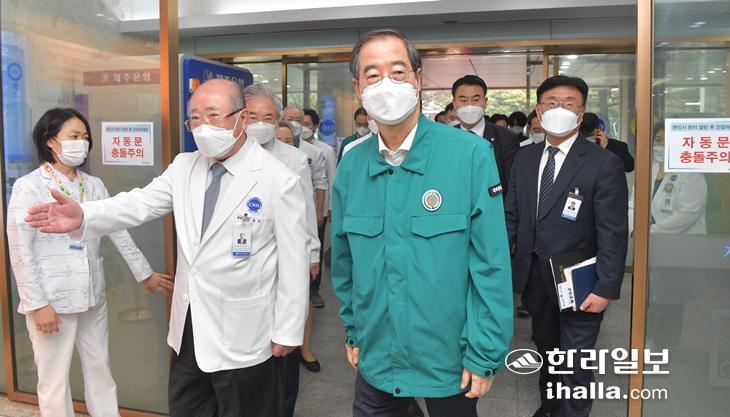 한덕수 국무총리가 3일 오후 의사 집단행동에 따른 비상 진료체계 현장점검을 위해 제주시 한라병원을 찾았다. 이상국 기자