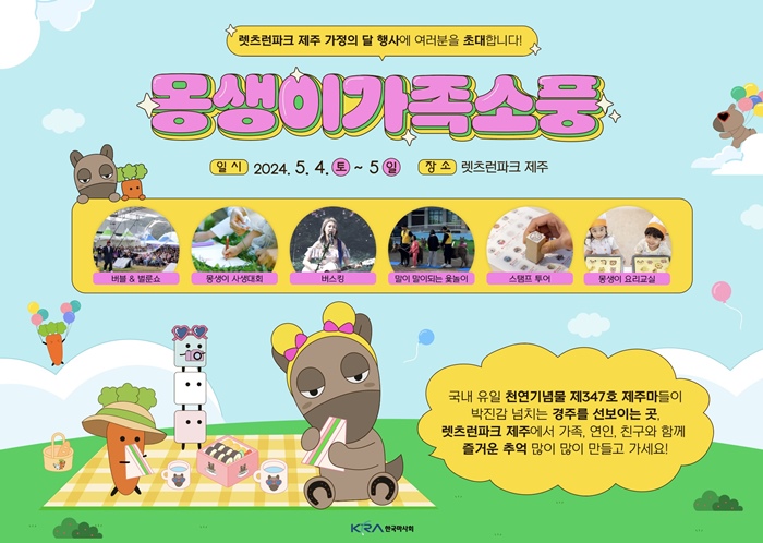 렛츠런파크 제주 4~5일 '몽생이 가족 소풍' 행사 개최