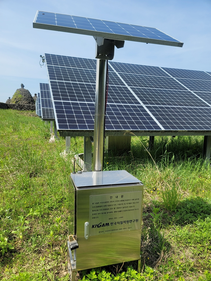 제주시 조전읍 제주돌문화공원에 설치된 한국지질자원연구원(KIGAM) 지진연구센터의 공중음파 관측장비.