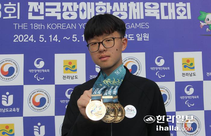 전국 장애학생체전 수영종목에서 3년 연속 3관왕 쾌거를 달성한 손세윤 선수. 제주자치도장애인체육회 제공