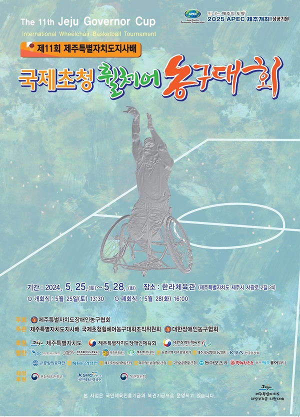 제주자치도장애인농구협회가 주최하는 제11회 제주특별자치도지사배 국제초청휠체어농구대회가 오는 25일부터 28일까지 나흘간 한라체육관에서 열린다.
