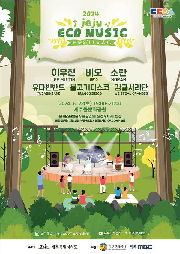 [한라일보] 제주특별자치도와 제주관광공사는 오는 22일 오후 3~9시 제주돌문화공원 특설무대에서 '2024 제주에코뮤직페스티벌'을 개최한다고 31일 밝혔다.