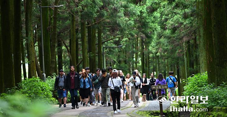 절물 휴양림 찾은 외국인 관광객. 한라일보DB