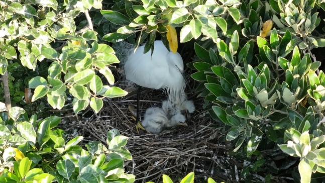 오 감독은 쇠백로 한 쌍이 지난 4월 짝짓기를 한 후 5개 알을 산란한 것을 관찰해 기록해왔으며 지난달 17일 다섯 마리 새끼가 탄생한 것을 확인했다고 설명했다.