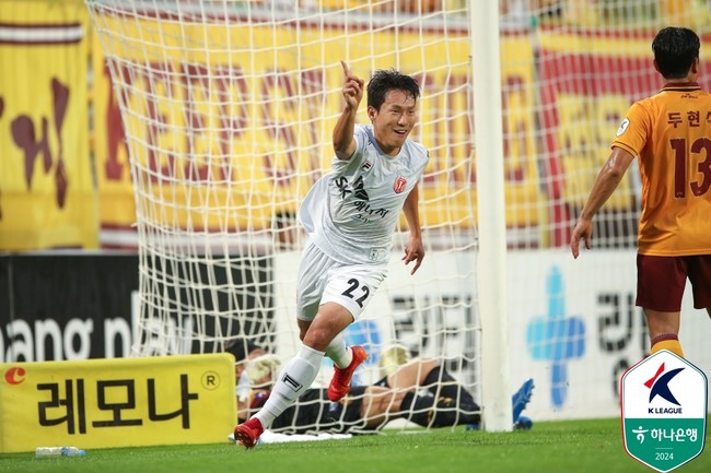 30일 광주와의 경기에서 동점골을 넣고 환호하는 제주 안태현. 한국프로축구연맹 제공