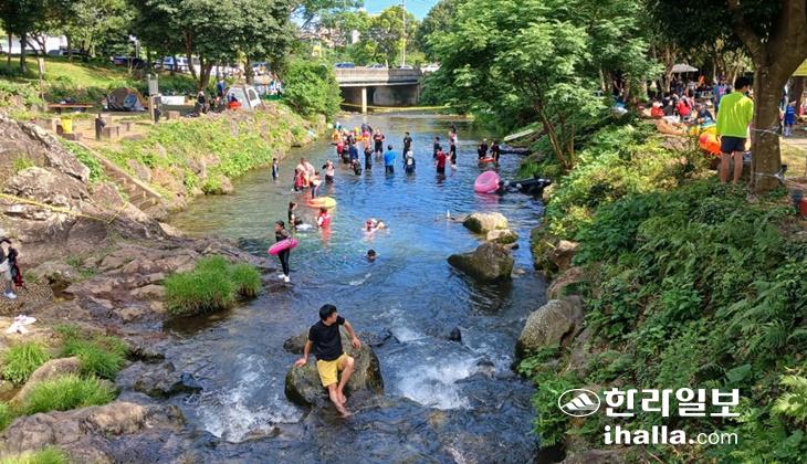 이날 개장한 하천 물놀이 지역은 강정천, 돈내코, 중문천, 솜반천, 산지물, 속골, 정모시쉼터다. SNS 등을 타고 입소문이 나면서 물놀이객이 몰릴 것으로 예상되는 곳이다.