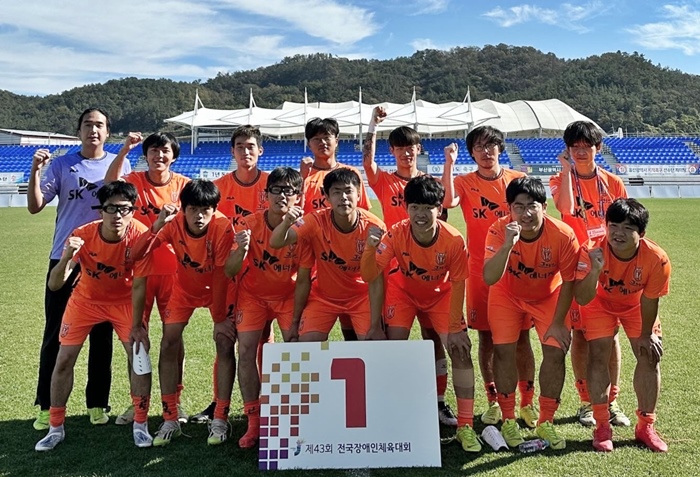 제43회 전국장애인체육대회 11인제 지적장애인부에서 1위를 차지한 제주팀.