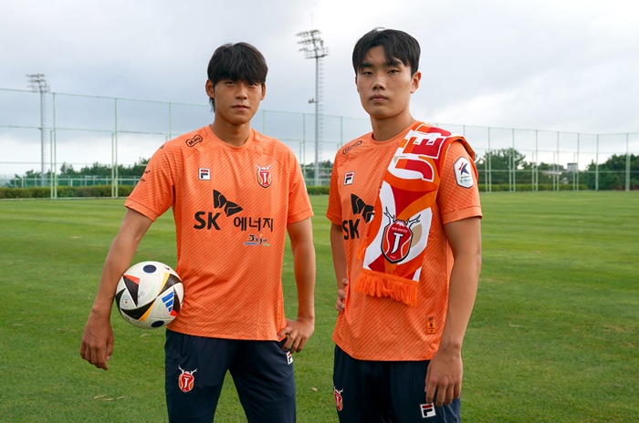 제주유나이티드가 U-22 출전카드로 영입한 센터백 자원 홍재석, 허강준(왼쪽부터). 제주 제공