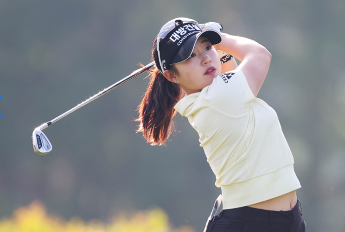[한라일보] 제주출신으로 2023드림투어 우승자인 임진영(대방건설)이 KLPGA 제주삼다수 마스터스 2라운드 공동 8위에 오르며 우승에 도전한다.