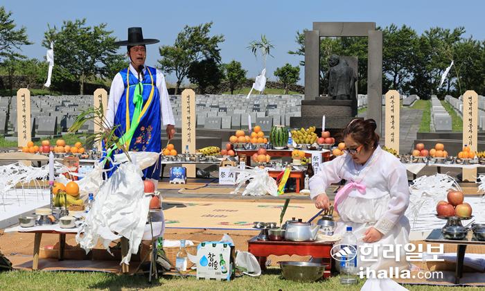 지난해 6월 3일 오전 제주시 봉개동 4·3평화공원에서 제주칠머리당영등굿보존회 주최로 '4·3 행방불명 희생자 추모 위령굿. 연합뉴스