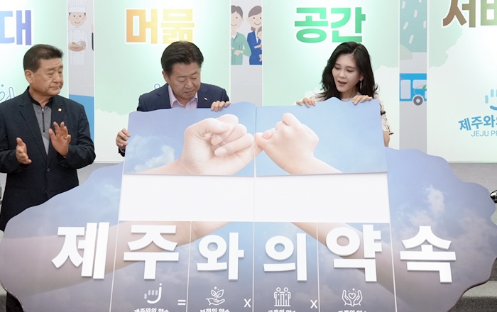 이 대표는 도내 숙박업체 대표 자격으로 이날 오후 제주자치도청에서 열린 숙박분야 '제주와의 약속'실천 한마음 결의대회에 참석해 관광객에게 더 따뜻한 환대와 함께 편안한 머묾, 더 쾌적한 공간, 고품격 서비스를 제공하기 위한 숙박환경 조성하겠다는 의지를 담은 퍼포먼스를 진행했다.