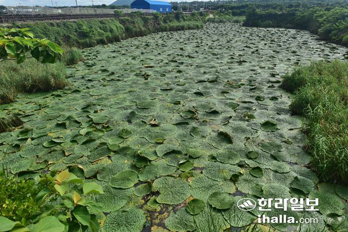 [한라일보] 제주시 동부지역에 위치한 저류지에서 대규모 가시연꽃 군락지가 발견돼 눈길을 끌고 있다.