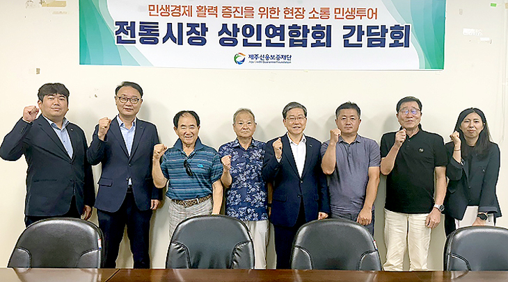 제주신용보증재단(이사장 김광서)은 지난 4일 동문재래시장 고객센터에서 전통시장 활성화 지원을 위해 동문재래시장상인회(회장 김원일), 동문공설시장상인회(회장 이정생), (주)동문시장상인회(회장 고석호), 동문수산시장상인회(회장 소기원)와 현장 소통을 진행했다. 이번 간담회에서는 자금난을 겪는 동문시장 상인들이 다양한 정책 자금을 보다 쉽게 이용할 수 있도록 동문시장 맞춤형 홍보물을 제작해 제공하기로 했다.