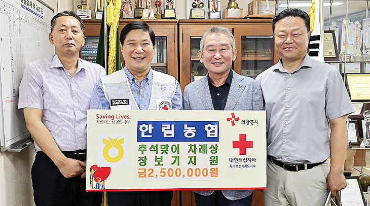 한림농협(조합장 차성준)은 지난 4일 본점에서 대한적십자사 제주특별자치도지사(지사회장 정태근)와 '2024년 추석맞이 취약계층 장보기 지원 기부금 전달식'을 갖고, 지역사회와의 상생을 도모하기 위해 취약계층의 추석 차례상 장보기 지원금 250만원을 전달했다.