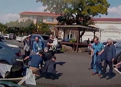 당시 주변에 있던 제주도의회 사무처 소속 김지희씨와 양기훈씨, 예식장 직원 황시욱씨가 이를 목격하고 곧바로 응급 처치에 나섰다.