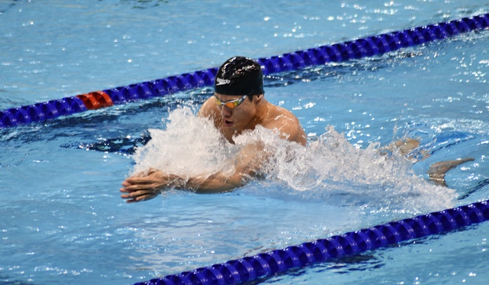 17일 수영(경영) 남자일반부 혼계영400m 결승에서 역영하는 문재권. 제주자치도체육회 제공