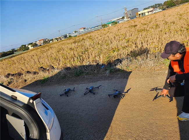농경지 재배면적 관측을 위해 드론을 준비하고 있는 모습. 제주도제공
