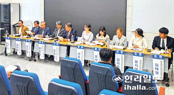 [한라일보] 제주도가 주최하고 제주통일미래연구원(원장 고성준), 제주통일교육센터(센터장 김일환 제주대 총장), 민주평화통일자문회의 제주청년위원회(위원장 김지은)가 공동 주관한 '한라-백두 청년지도자 육성 프로그램 운영 세미나'가 지난 1일 제주대 에듀홀에서 열렸다.