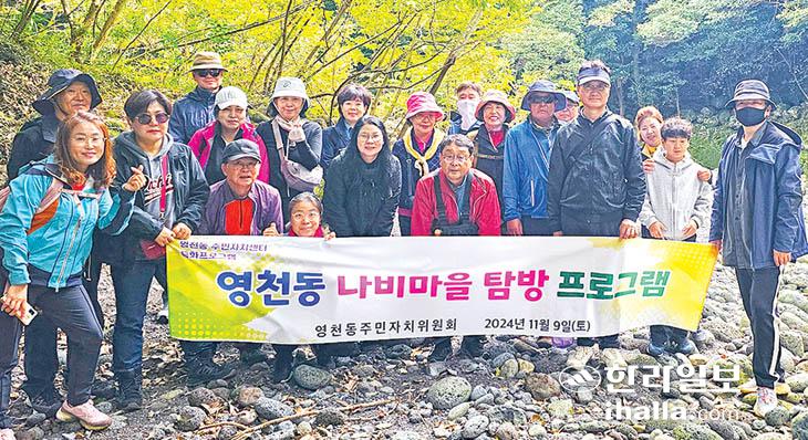 서귀포시 영천동 주민자치위원회(위원장 오창훈)는 지난 9일 문화해설사와 함께 원앙폭포, 영천악 등 영천동을 대표하는 명소를 걸어서 돌아보는 주민자치센터 특화 프로그램 '나비마을 탐방'을 진행했다.