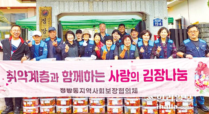 서귀포시 정방동 지역사회보장협의체(위원장 안옥자, 공동위원장 김현숙)는 지난 10일 지역 내 취약 계층 140가구를 방문해 안부를 확인하고 직접 담근 김치를 전달했다.