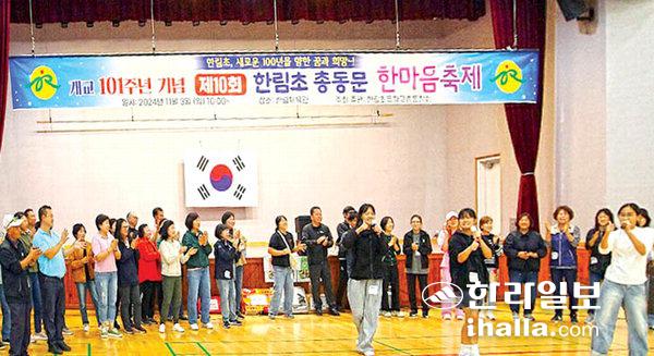 [한라일보] 한림초등학교총동창회(회장 고영효, 49회)는 지난 3일(일) 한림체육관에서 동문 및 가족 600여명이 모인 가운데, 개교 101주년 기념 '제10회 한림초 총동문회 한마음축제'를 개최해 동문들의 친선과 단합을 도모 했다.