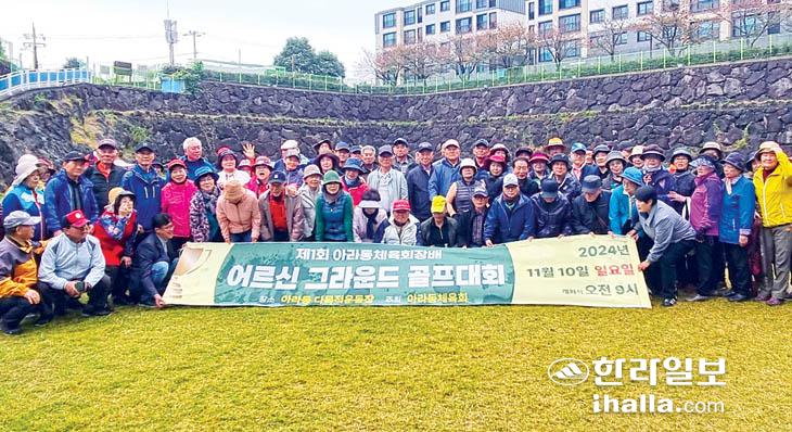 제주시 아라동체육회(회장 문석희)는 지난 10일 아라동 다목적운동장에서 제1회 아라동체육회장배 그라운드 골프대회를 개최했다. 이번 대회는 지역 내 동호회원 등 어르신과 주민 100여 명이 참여했다.