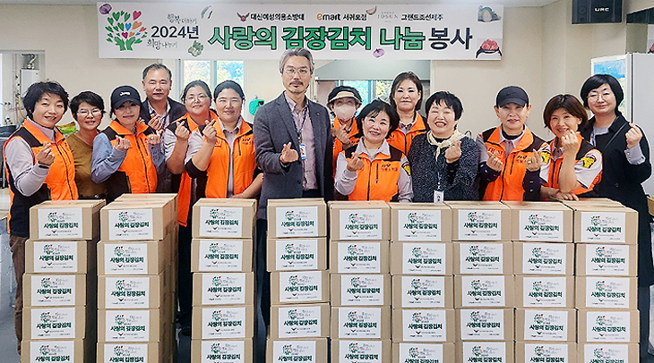 (재)제주특별자치도사회서비스원 서귀포시종합재가센터(센터장 송장희)는 지난 14일 대신여성의용소방대(대장 윤미정)와 연계해 서귀포시에 홀로 사는 노인 취약계층 130가구에 사랑의 김장김치 나누기 행사를 실시했다.
