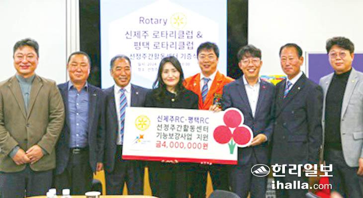 신제주로타리클럽(회장 고창호)과 평택로타리클럽(회장 이팔훈)은 지난 14일 400만원 상당의 물품을 제주사회복지공동모금회(회장 강지언)를 통해 선정주간활동센터에 기탁했다.