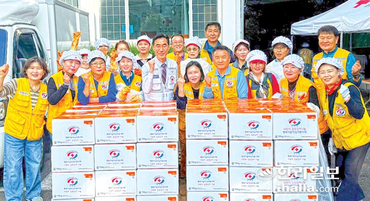 행복이음적십자봉사회(회장 김민경)는 지난 17일 북한이탈주민, 아라복지관, 제광원, 지역 경로당 2곳 등에 김치 300포기와 깍두기 300㎏을 전달했다.