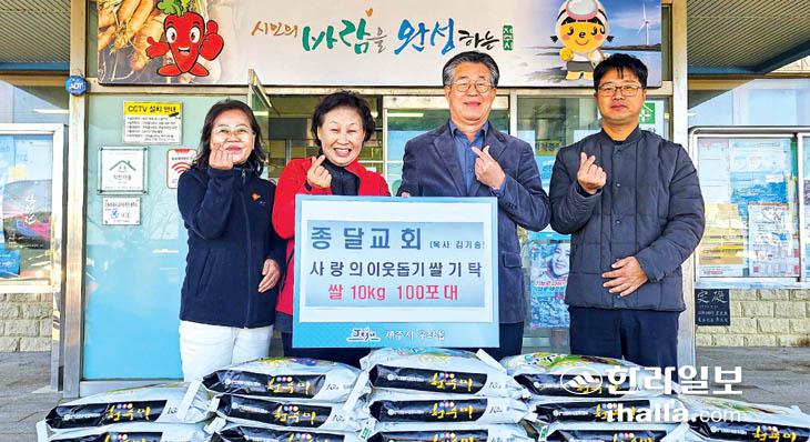 종달교회(목사 김기승)는 지난 18일 쌀 10㎏ 100포대를 제주시 구좌읍(읍장 오상석)에 기탁했다. 기탁된 쌀은 독거노인과 장애인 가구 등에 전달될 예정이다.