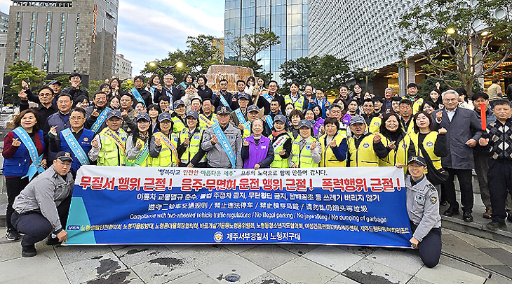 제주서부경찰서 노형지구대(대장 김상훈)는 지난 19일 노형동 지역 내 단체와 합동으로 '행복하고 안전한 아름다운 제주, 모두의 노력으로 함께 만들어 갑시다'무질서 행위 근절 캠페인을 전개했다.