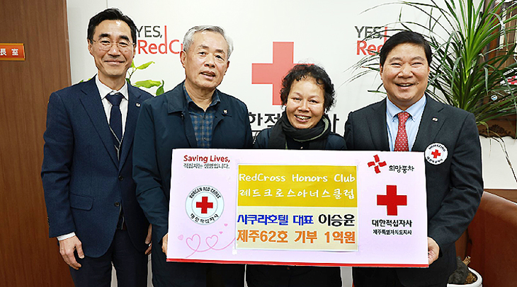 사쿠라호텔 이승윤 대표는 지난 20일 대한적십자사제주도지사(회장 정태근)에서 실시하는 1억원 이상 고액기부자 모임인 레드크로스아너스클럽에 제주 62호로 가입하고 성금 2000만원을 전달했다.
