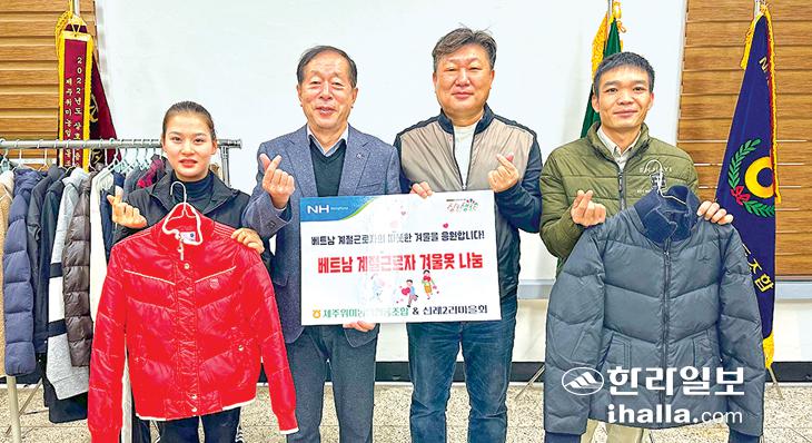 제주위미농협(조합장 현재근)과 신례2리마을회(이장 김철환)는 지난 25일 본점 회의실에서 지역 내 베트남 계절근로자들을 위해 동계 의류 나눔 행사를 진행했다. 이번 행사는 추운 겨울철 농촌현장에서 일하는 계절근로자들의 건강과 복지를 지원하기 위해 진행됐다.