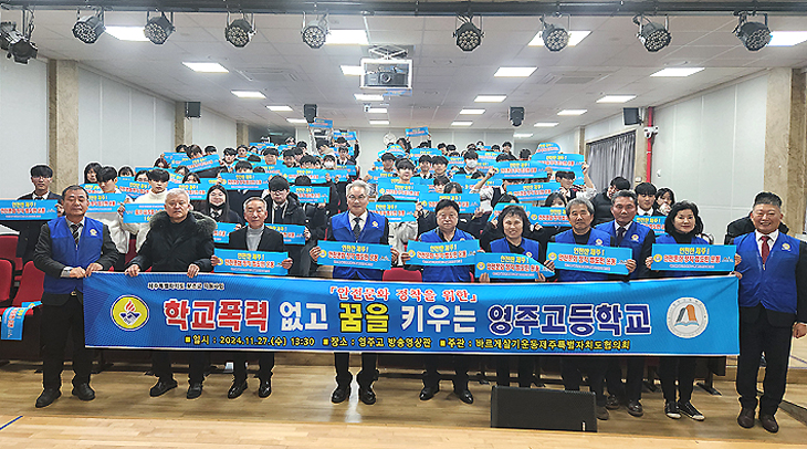 바르게살기운동 제주특별자치도협의회(회장 좌중언)와 영주고등학교(교장 이동성)는 지난 27일 영주고 방송영상관에서 안전문화 정착을 위한 학교폭력 예방 캠페인을 전개했다.
